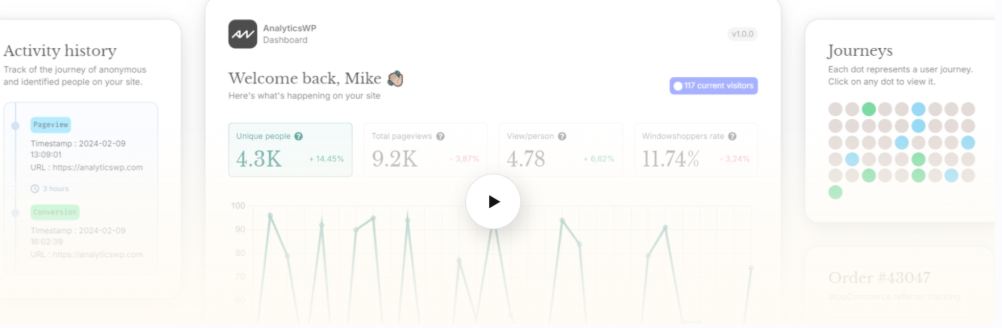 Analytics WP – это мощный и гибкий плагин для аналитики, специально разработанный для WordPress сайтов. Он обеспечивает полную интеграцию с Google Analytics и позволяет легко отслеживать ключевые показатели сайта прямо из панели управления WordPress.